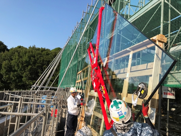 建物はあまり大きくありませんが、 外装には大判ガラスを含め大小202枚のペアガラスを取付けました。