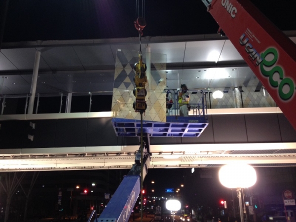 手摺にセラミックプリントの合わせガラスを使用した現場です。