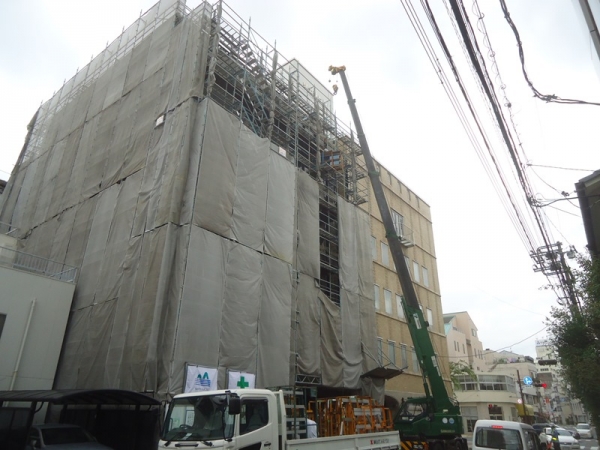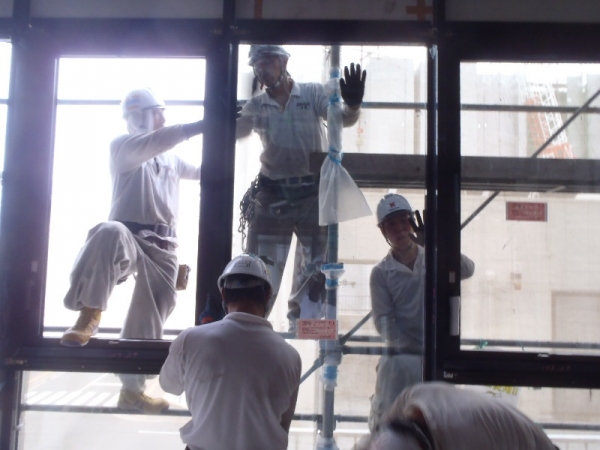 カーテンウォールに熱線反射ペアガラスを211枚使用しています。