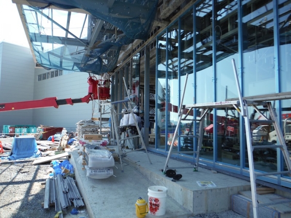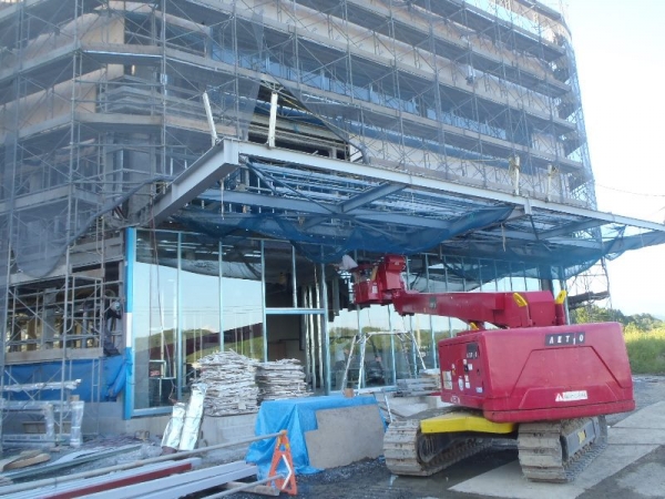 厚生棟は六角形で4面がガラス張りの建物です。