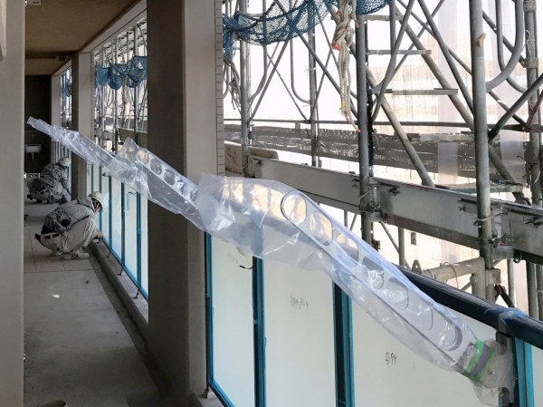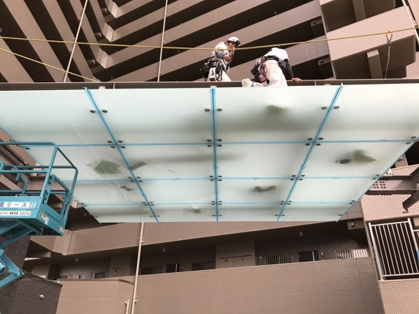 15階建ての建物でエントランスの庇にはDPGが採用されています。 段取りの良い現場でスムーズな作業が出来た現場でした。