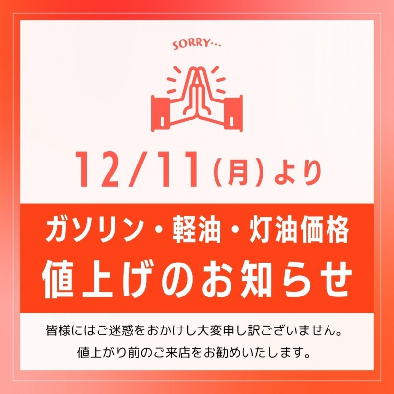 ガソリン・軽油・灯油価格値上げのお知らせ