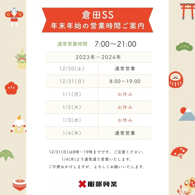 平野SS、花尻SS、倉田SS、ジョイカル倉田店の