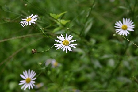 オオユウガギク Tweet 2010年09月21日 シンプルな花を咲かせるキク科の花です。 花は一般に白く時々淡い紫色も見られます。 写真は撮ったものの花の特定が難しく、ユウガギクやヨメナとの区別に迷いました。 決め手は花の中心部の冠毛(黄色い部分)の長さに違いがあるようです。 地下茎で伸びる多年草のため草刈りをしても毎年姿を見せてくれる花です。 記事詳細へ
