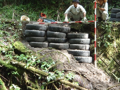 2011年度 山林研修 Tweet 2011年08月30日 (作業前) 3日目前半は道作り。 路肩が崩れた林道を廃タイヤを積上げ補強補修します。 完成イメージを共有しチームワークが発揮された作業でした。 記事詳細へ