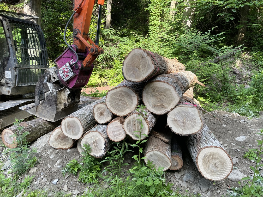 2022年、社有林の広葉樹材の付加価値向上のために伐採。