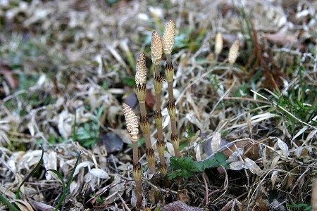 ツクシ Tweet 2010年03月22日 漢字では土に筆とかいてツクシ。土から伸びた筆ということでしょうか。 夏場によく畑などで見られるスギナとは同じ種で、ツクシは胞子を飛ばすために 春限定で伸びます。 スギナは夏の山荘裏庭をびっしりと覆います。草むしりとなれば、地上部だけがちぎれ 根っこが残ってしまいます。地下茎が網の目のように繋がっている証拠です。