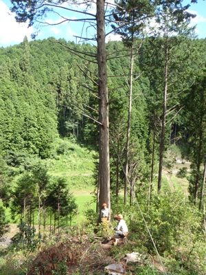 大径木の伐倒3 Tweet 2012年08月20日 大径木は伐倒時の折損を防ぐために、振り幅の少ない斜面上側に 倒すことが鉄則です。 しかし、だいたいの木は枝が下側に張り出しているため、ワイヤーで 上側に引き寄せながら重心を移動させて伐る必要があります。 記事詳細へ