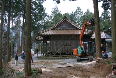 大径木の伐倒2 Tweet 2012年01月23日 そのため、チルホール使って境内とは逆方向へ引っ張りながらしっかりと受け口を入れます。 総代の方々に見守られながら、思いの方向へ伐倒できました。 記事詳細へ