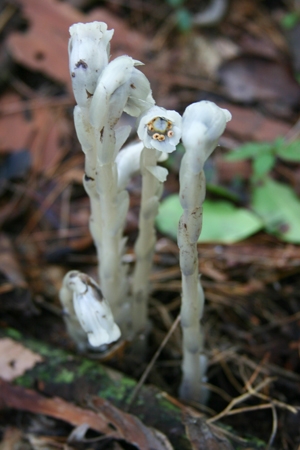 ギンリョウソウモドキ Tweet 2011年10月06日 春に咲くギンリョウソウに対し、ギンリョウソウモドキは秋の花。 時期的な違いで見た目はほとんど同じだが、二種類あるという事実を初めて知った。 葉緑素を持たないため光合成はできず葉も退化している。 ギンリョウソウの別名はユウレイタケと呼ばれ、全体的に透明に近い白色が その様を表している。 山の中で稀に見かけることはあったが、初めて写真に撮る機会となった。 記事詳細へ