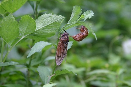 ヒグラシ Tweet 2010年08月17日 羽化したてのヒグラシです。 まだ全体的に茶色ですが、徐々に胴体は緑系統に、羽は透明になっていきます。 ヒグラシはカナカナと鳴く、とよく言われますが私にはそのように聞こえません。 セミに限らず鳴き声というのは言葉では表現しにくいものです。 皆さんはどのように聞こえますか? 9月頃までは聞けるはずです。気にしてみてください。 記事詳細へ