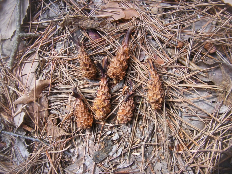 山のエビフライ Tweet 2009年03月19日 松林で見つけたエビフライのようなもの、何だか分かりますか? 正体は"松ぼっくり"。リスが松ぼっくりについているうろこ状の鱗片をかじり、中の種を食べた跡という訳です。辺りを探すとあちこちに落ちています。隣に立つ直径20センチほどのマツの木が食事場となっているのでしょう。 このように直接姿を見ることができなくても、食べ跡や糞などの観察から生息する動物が分かるものです。 記事詳細へ