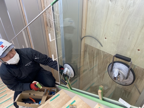 外装ガラスには強化ペアガラスを採用した建物です。