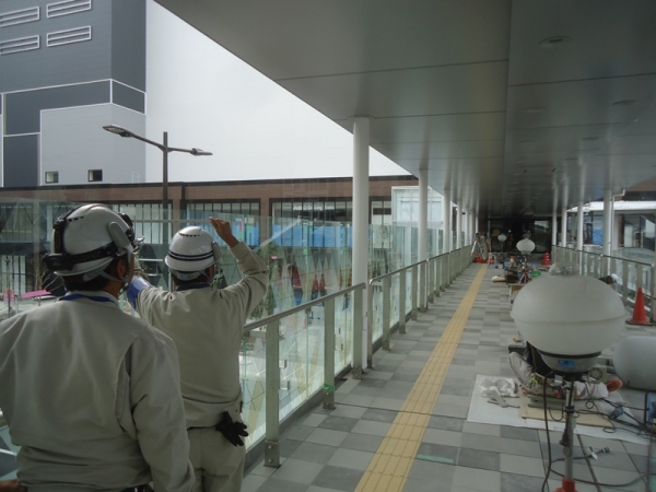 手摺にセラミックプリントの合わせガラスを使用した現場です。