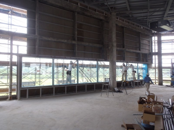 厚生棟は六角形で4面がガラス張りの建物です。