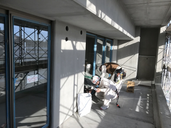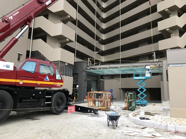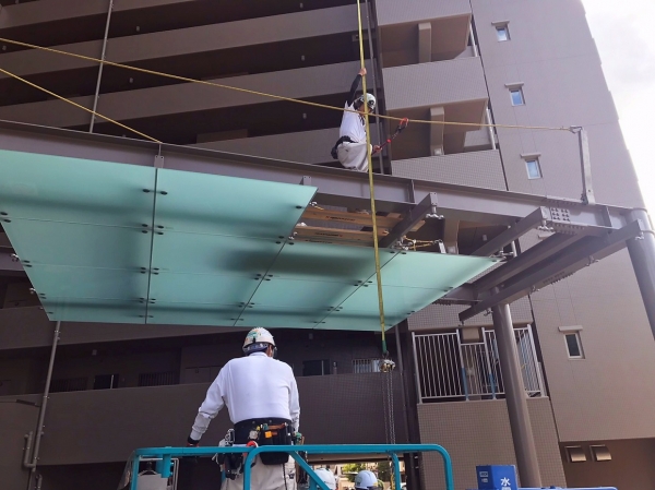 15階建ての建物でエントランスの庇にはDPGが採用されています。 段取りの良い現場でスムーズな作業が出来た現場でした。