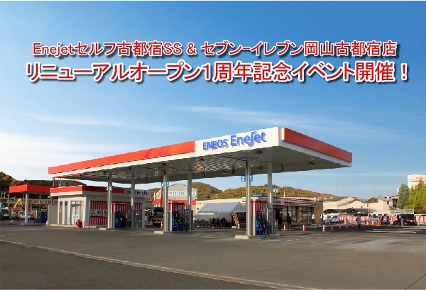 11月22日(金)、23日(土)、24日(日)の3日間、Enejetセルフ古都宿SS & セブン-イレブン岡山古都宿店 にてリニューアルオープン1周年記念イベントを開催いたします。 イベントタイム 9:00~19:00 抽選会やセブン-イレブン試食会など、さまざまな企画をご用意しております。 皆様お誘い合わせの上、ぜひご来店ください。