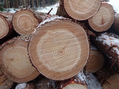 凍結丸太 Tweet 2011年01月29日 氷点下の日が続くと、切った丸太の色が普段と違います。 木材内部は中心部の心材と周囲の辺材に分かれますが、 水を吸い上げる機能のある辺材部分に含まれる水分が凍るためです。 この状態のときは透明に近い色となります。 凍った丸太は氷のようなもので固くて切りにくく、 チェンソーの切れ味もすぐ悪くなるため、こまめな目立てが必要となります。 記事詳細へ