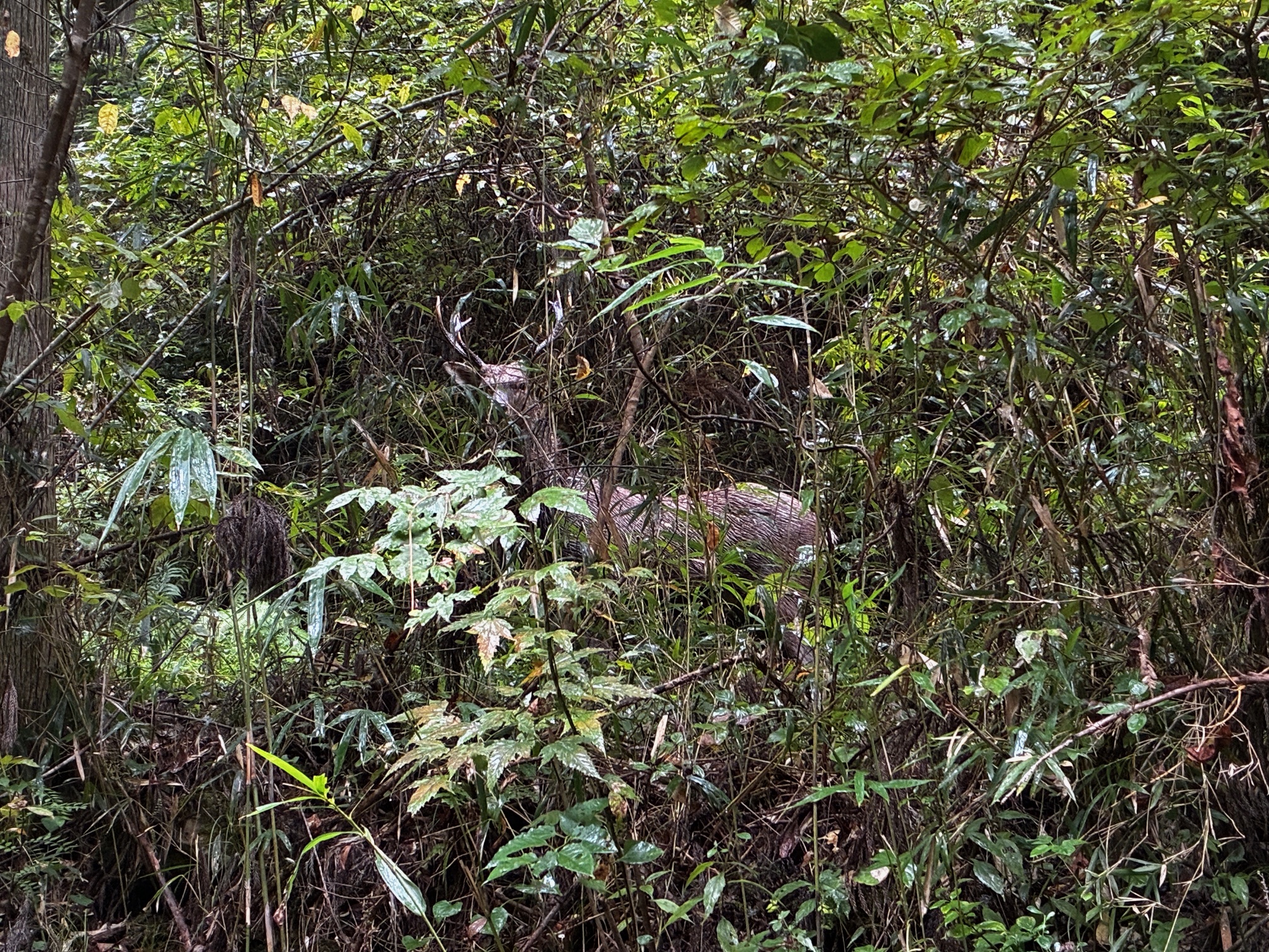 社有林では年に数回見かけることがありますが、久しぶりにニホンジカ雄を確認しました。