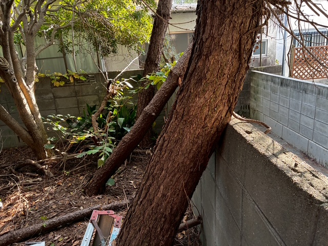 伐採木は全て持ち出し処分し、周辺の建物等を傷つけることなく無事に作業を終えました。