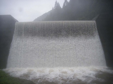 ダム Tweet 2010年07月03日 大雨が降った際の落合山林事務所前・砂防ダムです。 この日の真庭地方は朝から大雨警報が発令され、前日から降り続く雨が 河川へ一気に流れ出ます。ダムの飛沫も最高潮で近づくだけでびしょ濡れに。 普段はチョロチョロと流れるだけの砂防ダムですが、大雨時は怖さを感じるほどです。 山の管理をしっかり行うことで、山全体の保水力は向上します。 管理された山は何より役立つ自然のダムとなります。