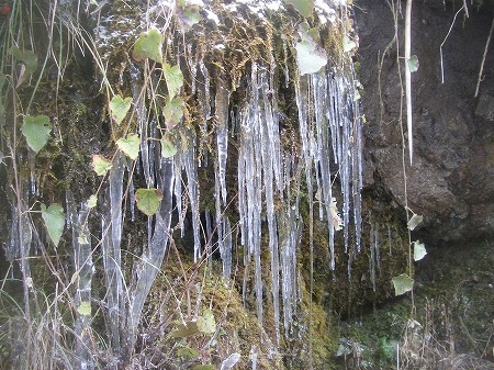つらら Tweet 2009年12月21日 この一週間は寒波の影響で落合でも初積雪となりました。 今年は暖冬と言われていますが、やっぱり冬の寒さです。 山道の日陰ではつららも見られます。 つららは雪解け水などが外気の冷たさで再び凍ったもの。 ちょうど氷点くらいで起こりやすい現象でしょうか。 長さは10cmほどあり、見るだけで寒さが増してきます。 今年も残り10日。 年内にやるべきことを再度確認したいと思います。