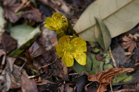 フクジュソウ(キンポウゲ科) Tweet 2009年03月03日 元日草とも呼ばれますが、自然に咲くのは2月中旬頃から。 まだ出始めで完全に花開いていませんが、近くにはフキノトウも 顔を出しており春を感じさせてくれる花です。 金色に近い黄色は冬枯れの枯葉の中で目立ち、生命のエネルギーを感じます。 葉はニンジンの葉に似ていますが、茎や根を含め有毒なので絶対に食べないように! 記事詳細へ